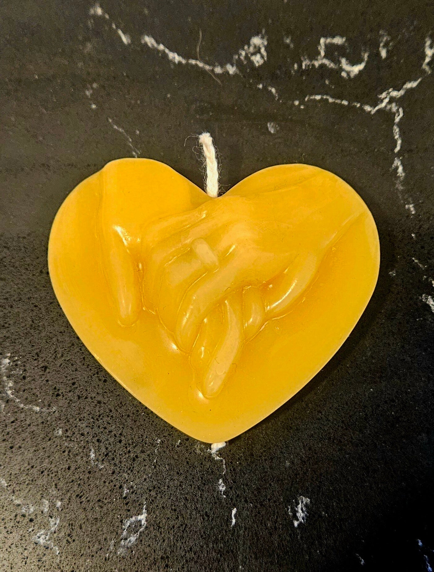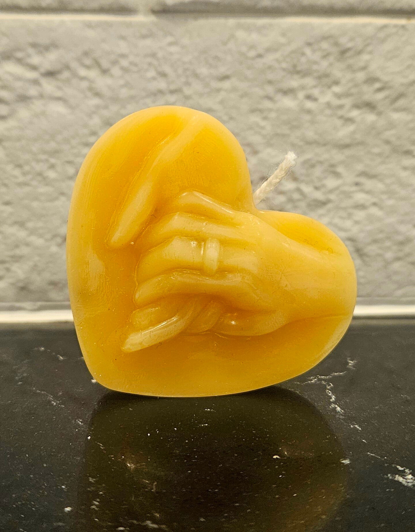 A small, but nice heart-shaped candle of a couple holding hands.