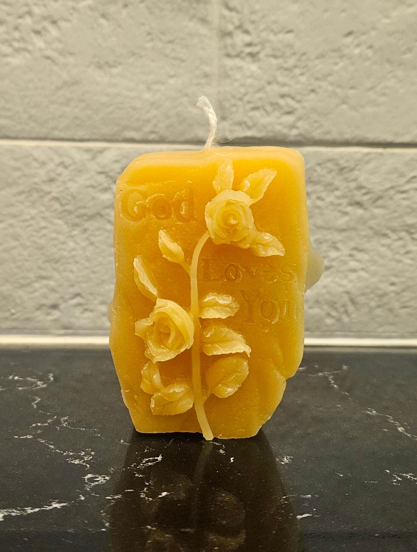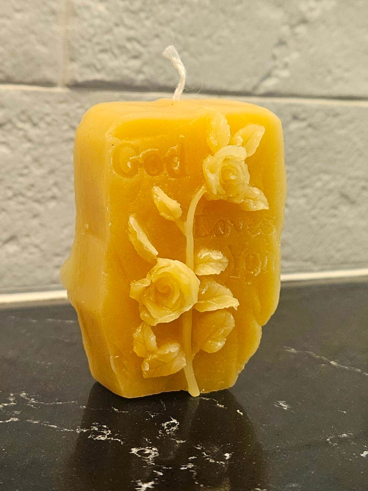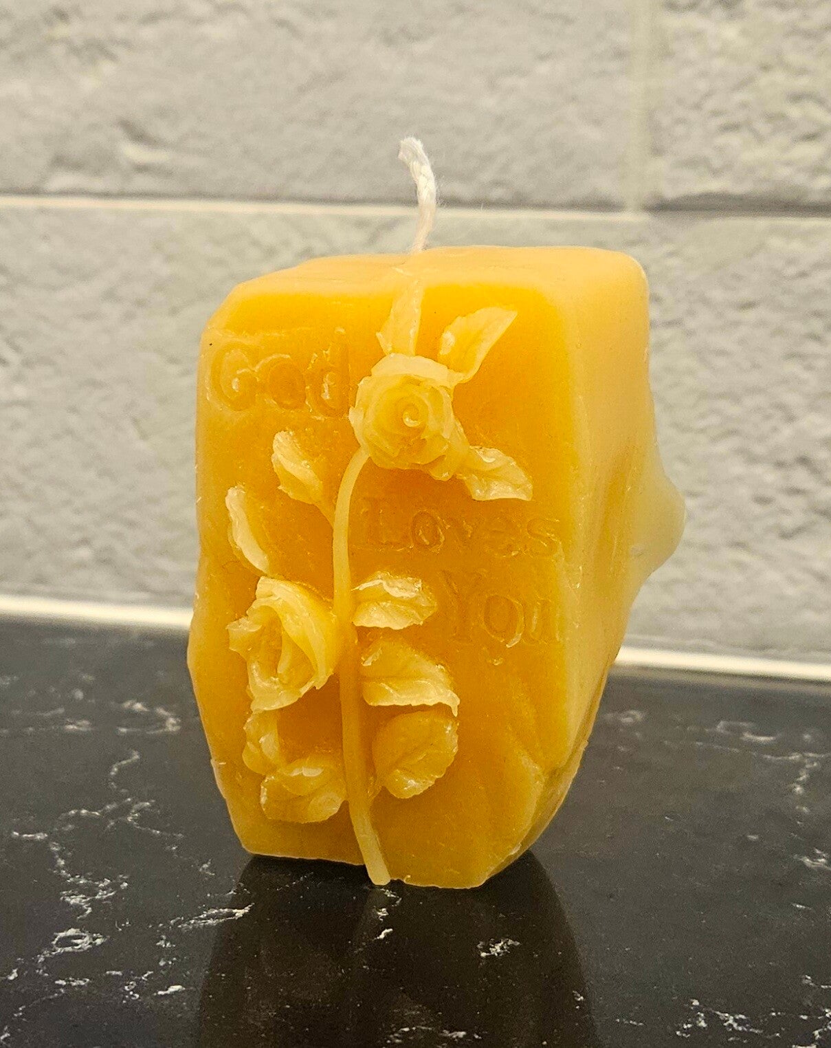 A beautiful candle of a flower representing Gods ever-blooming love.